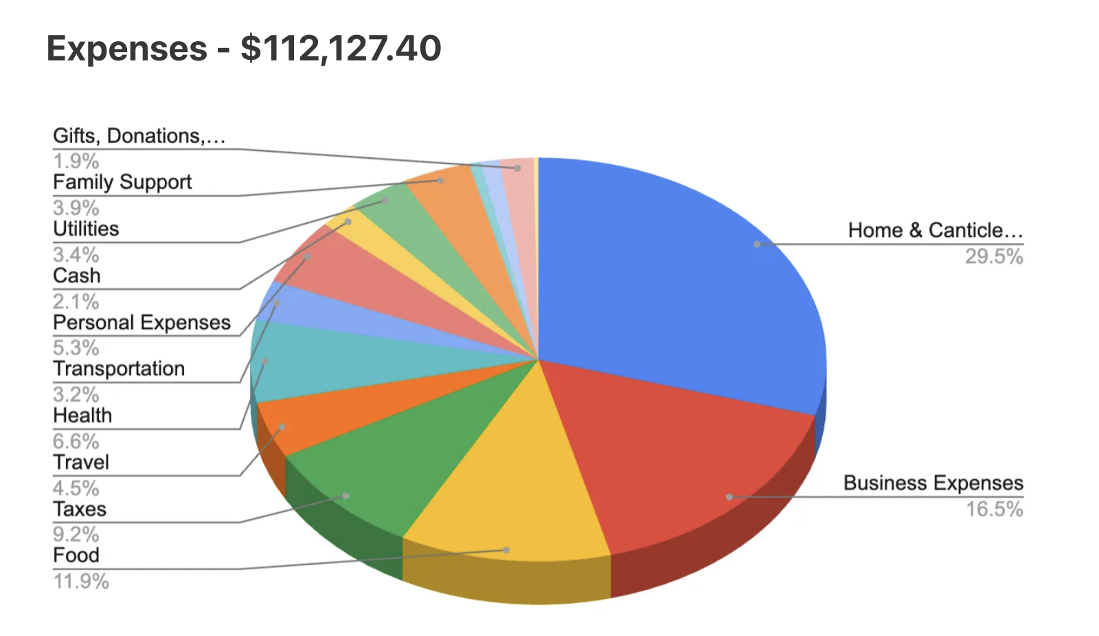 We (Kazu and LiZhen) share all of our finances. We both practice in the Gift Economy. These numbers reflect the expenses and income for both of us, supporting a family of four (the two of us, our little one, and Kazu’s mother) – in addition to regularly supporting other members of our immediate families who are in need.